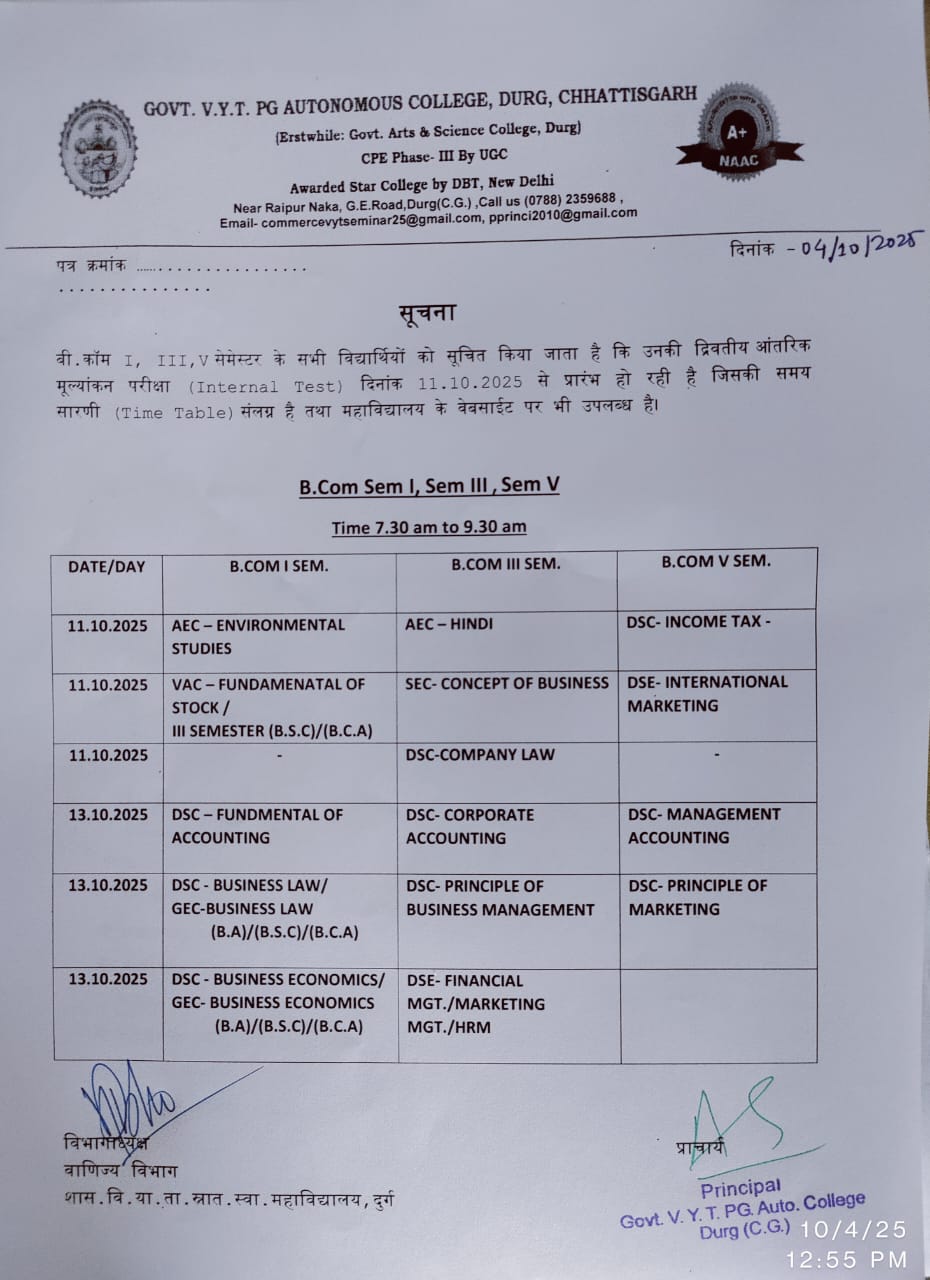 द्वितीय आंतरिक मूल्याकन परीक्षा B.Com टाइम टेबल