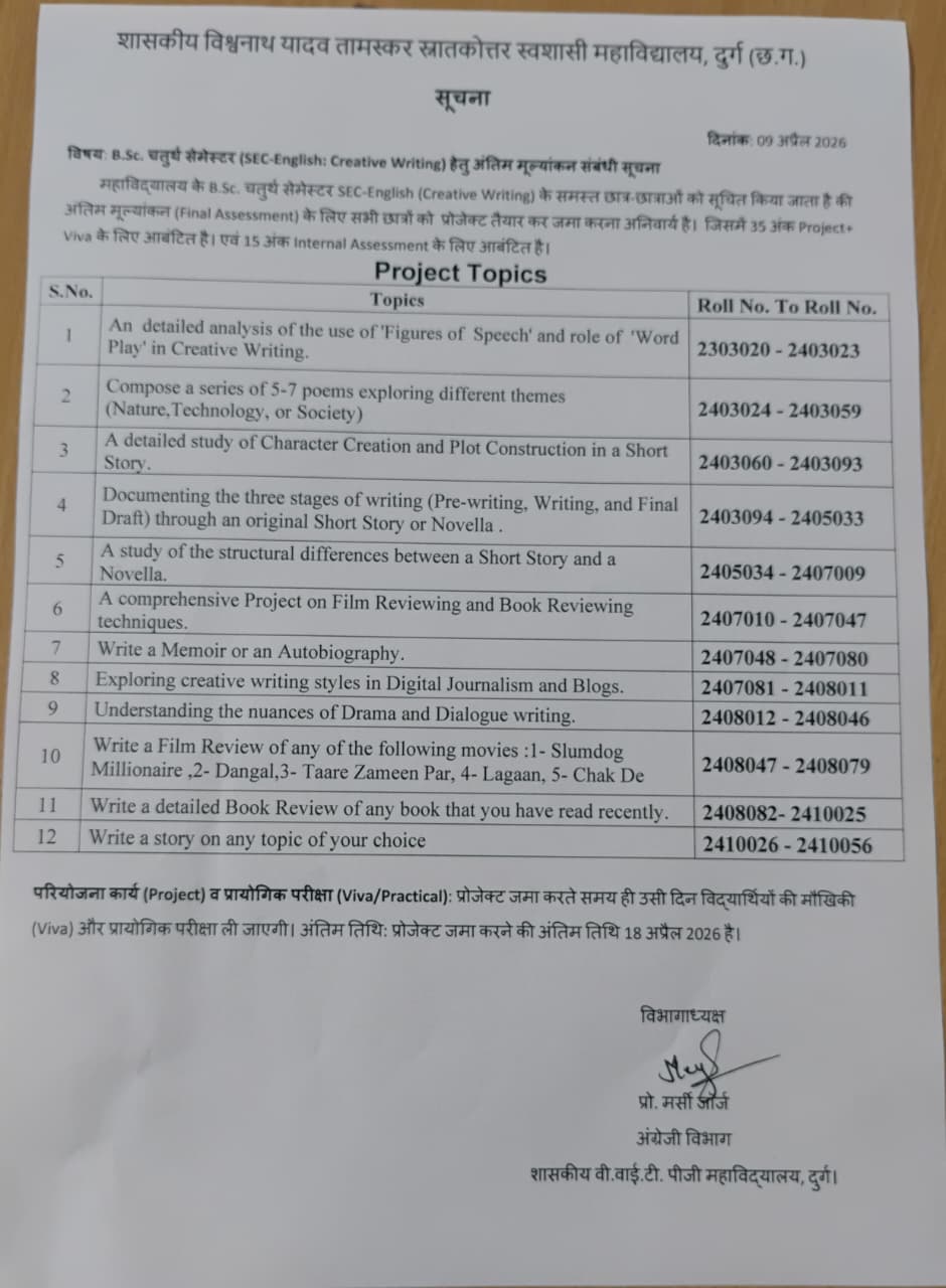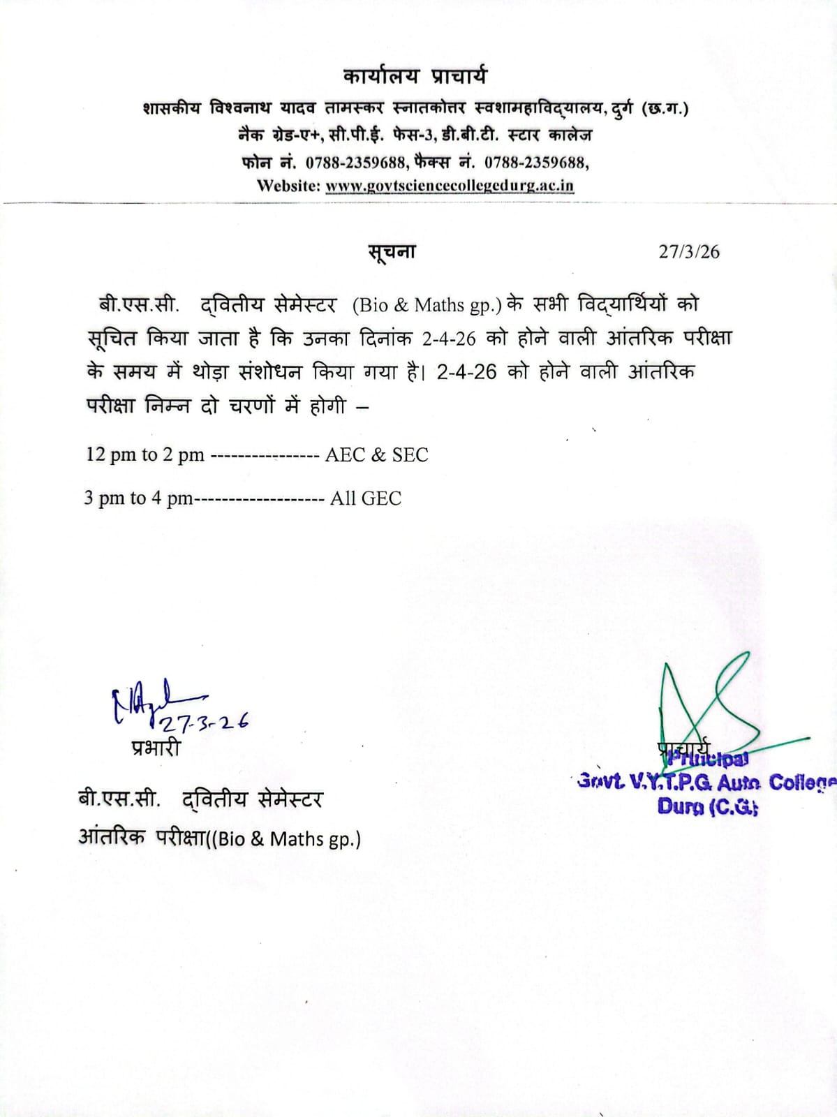 शासकीय वि.या.ता. स्नातकोत्तर स्वशासी महाविद्यालय में " महिलाओं के कानूनी अधिकार" पर कार्यशाला संपन्न 09-03-2026 Read more
