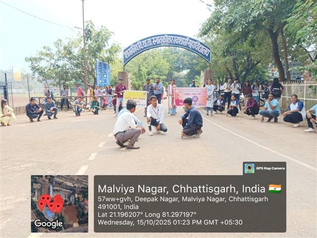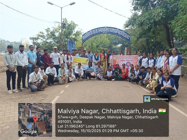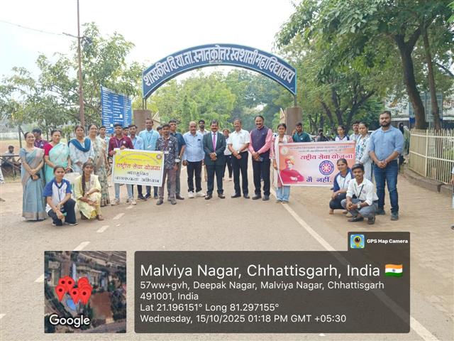 शासकीय विश्वनाथ यादव तामस्कर स्नातकोत्तर स्वशासी महाविद्यालय, दुर्ग में “नशामुक्त भारत अभियान” के अंतर्गत राष्ट्रीय सेवा योजना (NSS) इकाई द्वारा जागरूकता कार्यक्रम का आयोजन किया गया। कार्यक्रम के तहत स्वयंसेवकों ने महाविद्यालय परिसर में नुक्कड़ नाटक एवं रैली के माध्यम से “नशामुक्त महाविद्यालय – स्वस्थ समाज की दिशा में कदम” का संदेश दिया।