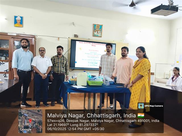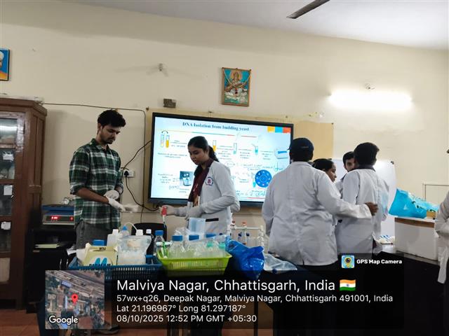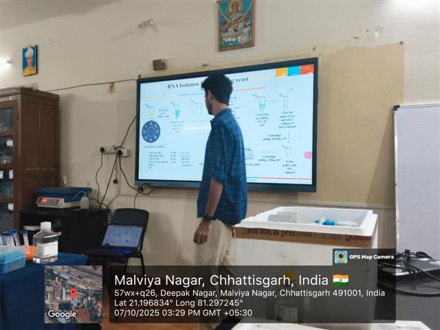 TheDepartment of Biotechnology, Govt. V.Y.T. PG. Autonomous College, Durg,successfully organized a five-day Hands-On Workshop on “YeastGenetics”, sponsored by RUSA 2.0, from 6thto 10th October, 2025. Under the convenership of Dr.Shweta Pandey and with the support of Prof. A.K. Singh,Patron & Principal, the workshop witnessed enthusiastic participation from 40students, 3 faculty members,and 2research scholars. The technical sessions were led by Dr.Shuvadeep Maity from BITS Pilani Hyderabad, along withtechnical experts Dr. K. Pradeep, Mr.K. Chaitanya, and Ms. Vaishali Kumar,who collectively delivered theory, demonstrations, and hands-on practicaltraining throughout the program.