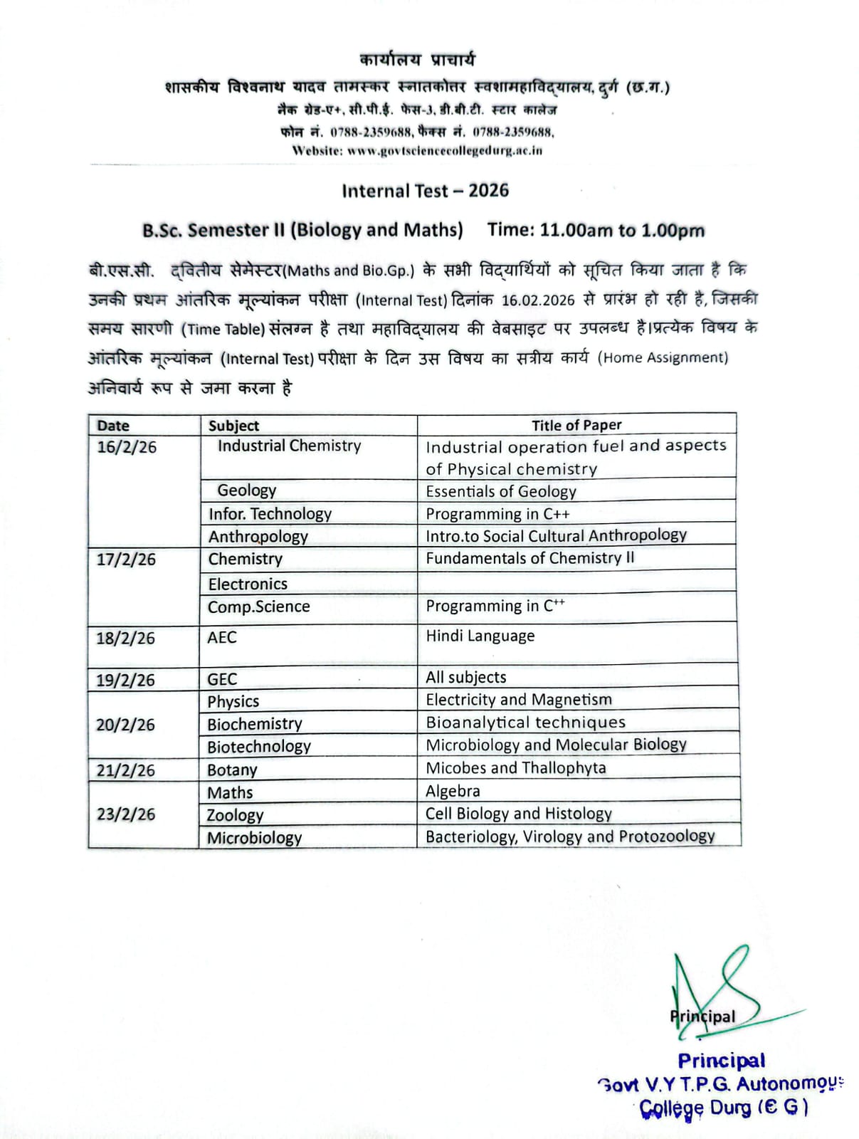 Time Table Annual Exam March-April 2026