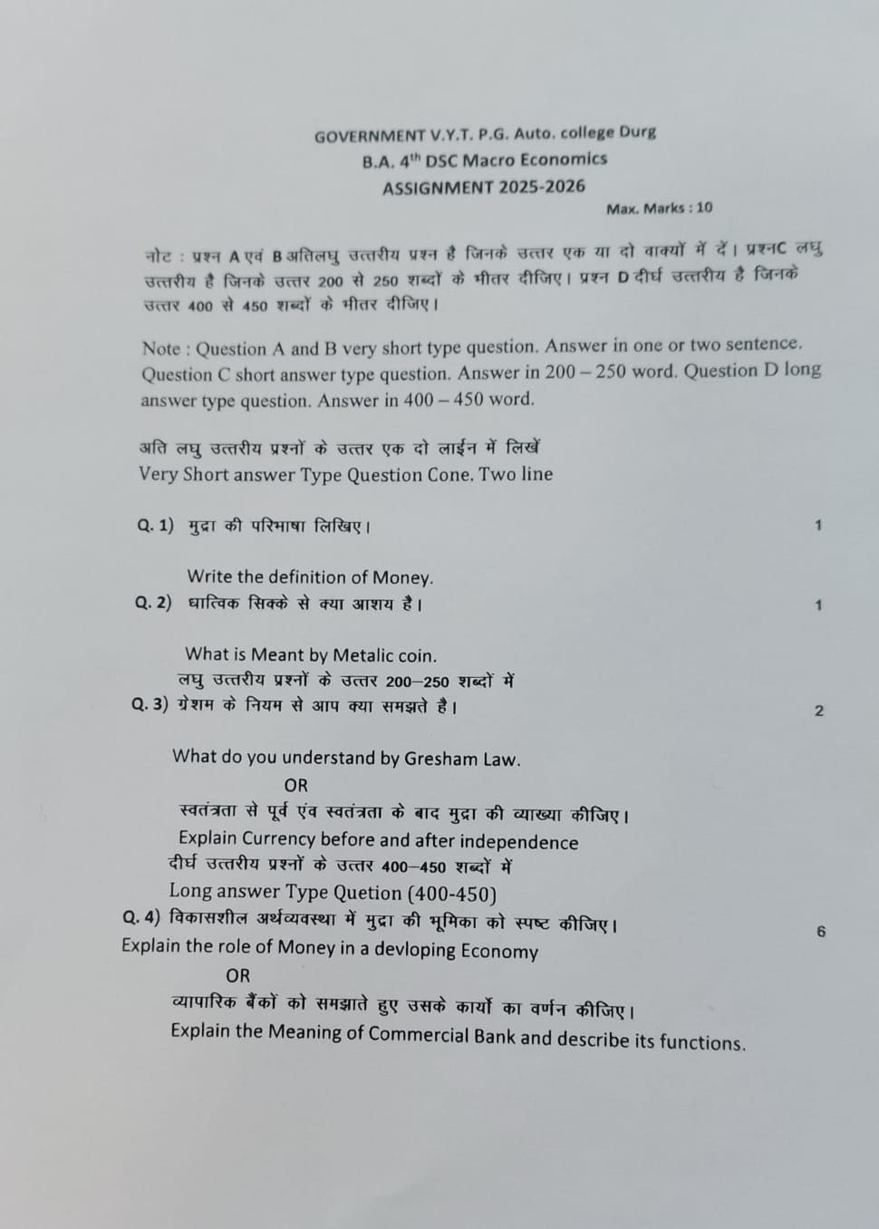 ASSIGNMENT BA 4th Sem Economics (DSE) MONEY AND BANKING